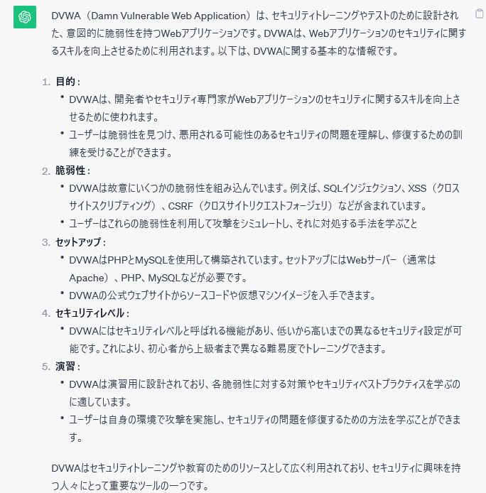 - githubよりDVWAをダウンロード(“https://github.com/digininja/DVWA”)