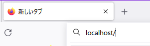 - Webブラウザを起動し、アドレスバーに「localhost」と入力し移動